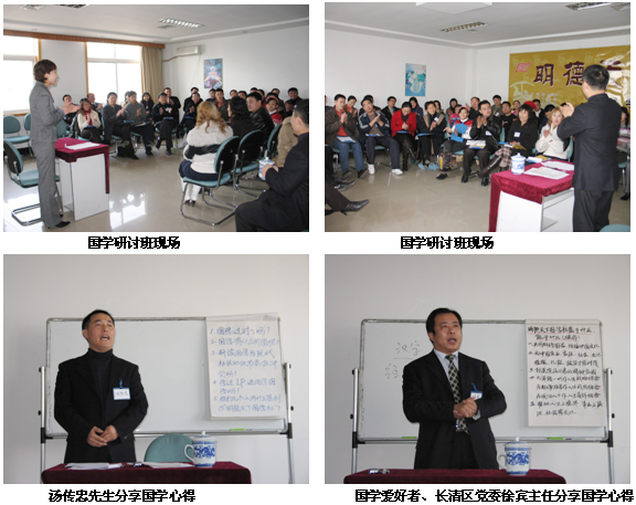 從2007年初至今,組織了完全免費(fèi)的國學(xué)研討班,聘請專門的國學(xué)老師與國學(xué)愛好者討論及交流傳統(tǒng)文化,平均每20天一次,目前,已組織了近50次,課堂氣氛非?;钴S,大家都從國學(xué)文化的精髓中學(xué)到了很多,普遍反映國學(xué)有利于身心和諧、有利于工作和生活的健康。