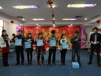 聯(lián)歡會還安排了精彩的抽獎環(huán)節(jié),大家把自己真誠的祝福提前寫在卡片上,匯集在抽獎箱中,隨著主持人公布的抽獎名單,幸運者帶著開心的笑容上臺領取了獎品,并一一宣讀了自己的祝福語:有的祝愿自己的家人和同事都能健康、快樂;有的祝愿大家在新的2012年工作順利,家庭幸福;也有的祝愿公司基業(yè)長青,發(fā)展越來越好;還有的祝愿我們偉大的祖國繁榮昌盛。伴隨著大家送上的美好祝福,現(xiàn)場充滿了溫馨與感動。