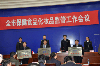 2013年3月13日,由濟(jì)南市食品藥品監(jiān)督管理局主辦的“濟(jì)南市保健食品化妝品監(jiān)管工作會(huì)議”在龍奧大廈隆重召開(kāi),來(lái)自濟(jì)南市及各縣(市)區(qū)監(jiān)管系統(tǒng)一線的執(zhí)法工作人員參加了此次會(huì)議。會(huì)議由濟(jì)南市食品藥品監(jiān)督管理局?;庩悘V銀處長(zhǎng)主持,濟(jì)南市食品藥品監(jiān)督管理局衣光軍副局長(zhǎng)、?;幎艜詡タ崎L(zhǎng)、?;幹煦y和科長(zhǎng)出席會(huì)議,我公司和山東天地健生物工程有限公司、山東福瑞達(dá)生物工程有限公司參加了此次會(huì)議,并上臺(tái)領(lǐng)取了“濟(jì)南市保健食品化妝品監(jiān)管實(shí)踐基地”的標(biāo)牌。