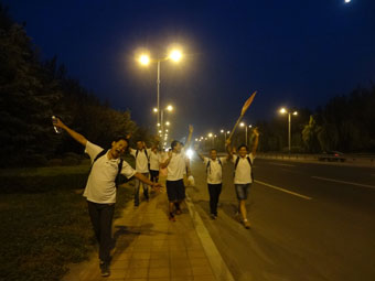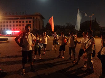 夜晚的秋風,帶著一絲絲的涼意,寬廣的馬路,自東向西一路延伸,每個人的臉上都充滿了興奮和激動,以及對完成目標的自信。各小組在隊長的帶領下,沿著經(jīng)十路一路向西,途中,大家恣意高歌、暢談,相互鼓勵著,相互支持著,整個隊伍呈現(xiàn)出一派激情昂揚、其樂融融的美好氛圍。約兩個小時后,各小組陸續(xù)到達第一集結點——孫村新區(qū),后勤支持人員為大家準備了脈動飲料,隨風飄揚的“突破旅”大旗點燃了大家的激情。