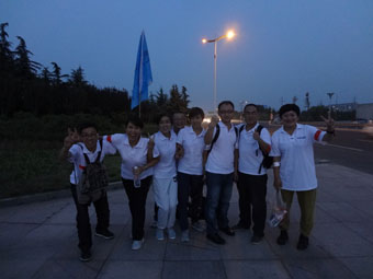 9月16日下午17:30,參加此次拉練的全體成員統(tǒng)一著裝,齊聚在生產(chǎn)基地會議室里參加了動員大會。培訓部經(jīng)理傅龍先生帶領大家進行了定向,就拉練人員分組、行程規(guī)則、注意事項等進行了詳盡細致的介紹。全體人員按照動員要求分為三個小組,隨后,各小組人員用了約10分鐘的時間選隊長、起隊名、隊呼,畫隊旗。18:10,全體人員統(tǒng)一乘坐大巴車到達徒步的起點——山東財經(jīng)大學。18:30分,三個小組同時邁出了這次征程的第一步,拉練活動正式開始。