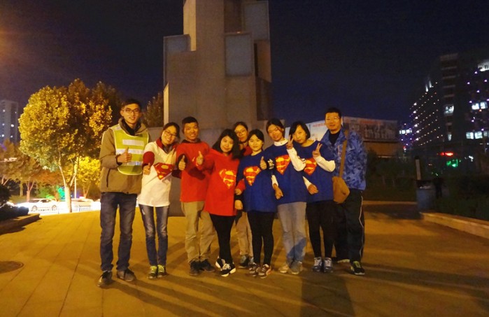 20km至30km途中,有些成員的腳上磨出了水泡,在團(tuán)隊成員的鼓勵與支持下,進(jìn)行簡單處理,憑借堅持與意志力,努力前行。21:30,歷時9個半小時,兩隊終于全部到達(dá)終點——高新區(qū)舜泰廣場,完成了30km徒步拉練,無一人掉隊。