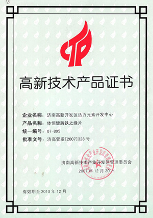 高新技術(shù)產(chǎn)品證書(shū)—鋅硒寶