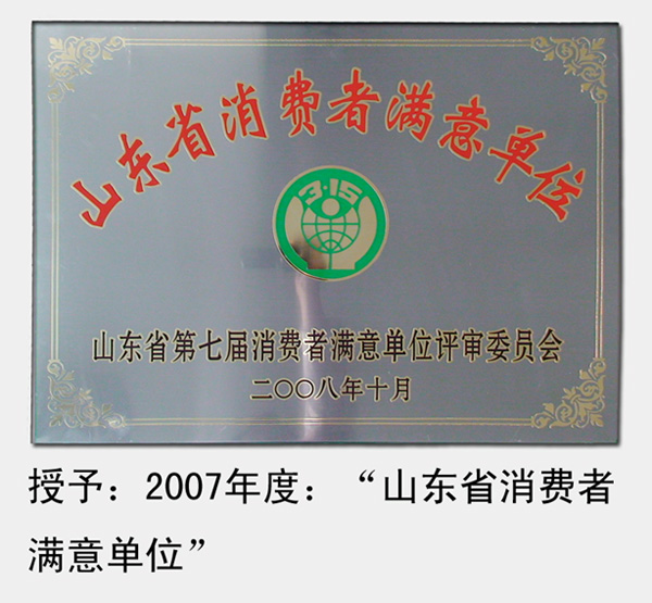 2008年,被山東省消費者協(xié)會評為“第七屆山東省消費者滿意單位”
