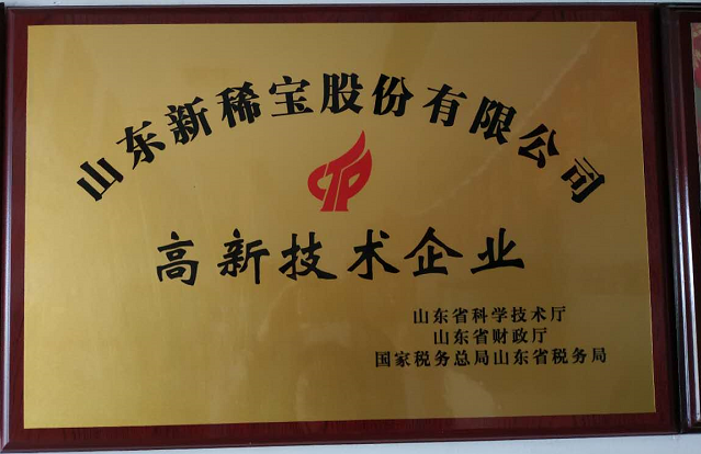2018年,山東新稀寶股份有限公司被山東省科學(xué)技術(shù)廳、山東省財(cái)政廳、國(guó)家稅務(wù)總局山東省稅務(wù)局評(píng)為“高新技術(shù)企業(yè)”