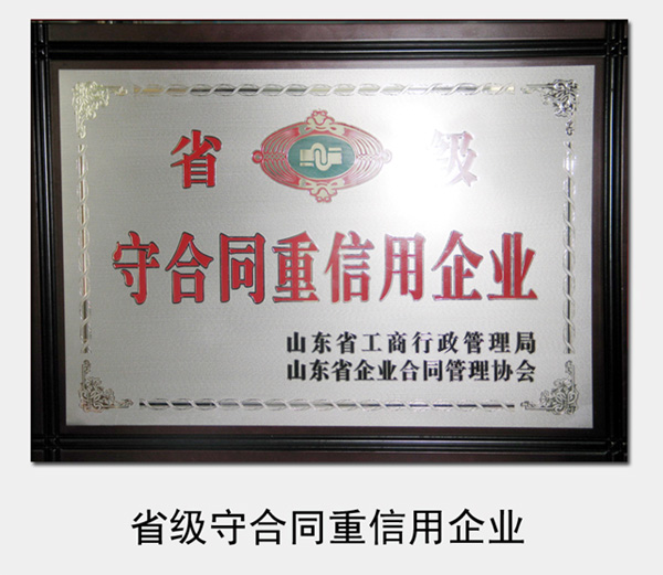 2005年至今,連續(xù)被山東省工商局認(rèn)定為省級(jí)“守合同重信用企業(yè)”
