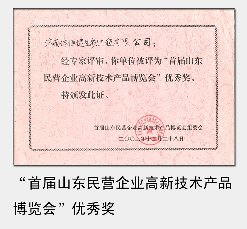 2003年被評(píng)為“首屆山東民營(yíng)企業(yè)高新技術(shù)產(chǎn)品博覽會(huì)”優(yōu)秀獎(jiǎng)