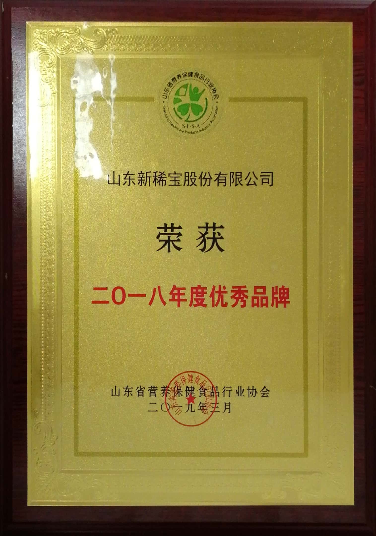 被山東省營(yíng)養(yǎng)保健食品行業(yè)協(xié)會(huì)授予“二0一八年度優(yōu)秀品牌”