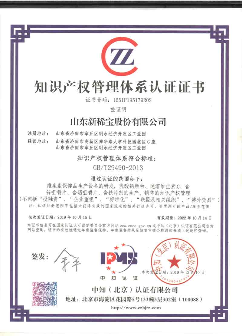 知識(shí)產(chǎn)權(quán)管理體系認(rèn)證證書